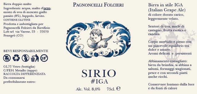 Sirio, birra IGA di moscato giallo spumantizzata con metodo classico, versione pàs dosé (0,75l.- 7,9%) e Mùscat, birra IGA di Moscato di Scanzo (0,75l.- 8,5%)